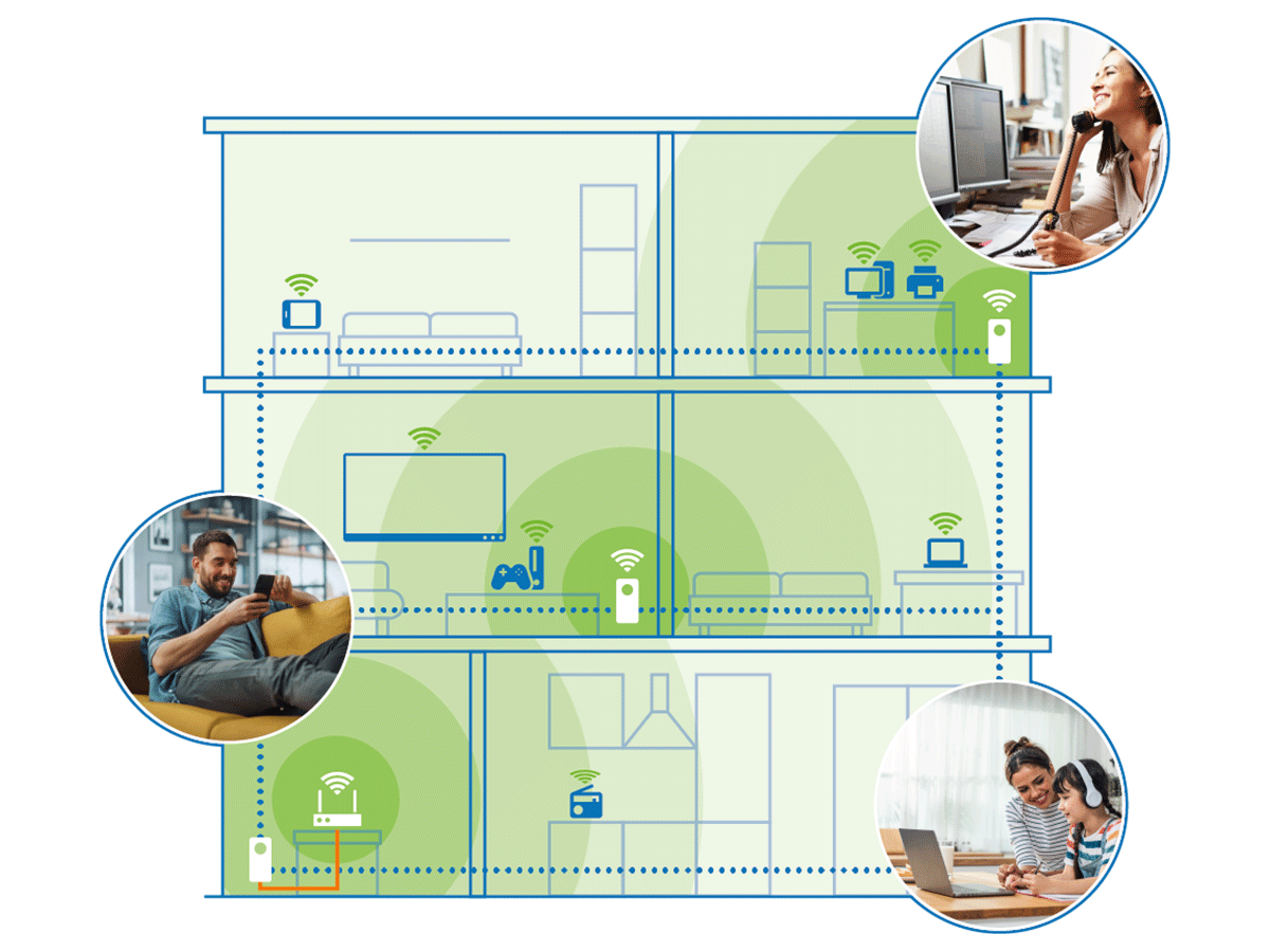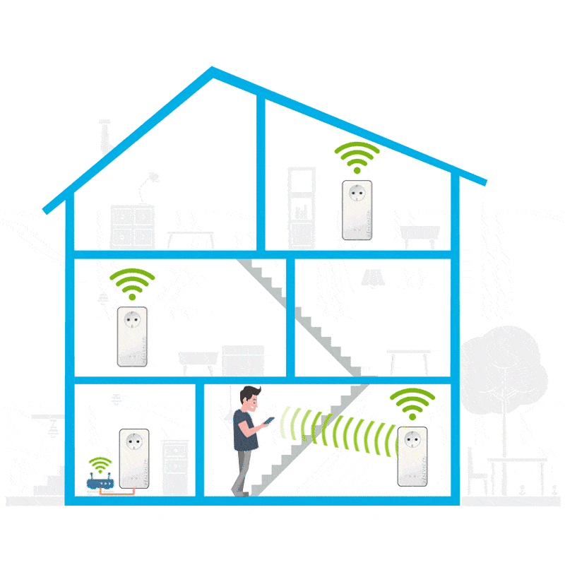 Nasze adaptery Powerline zapewniają, że sygnał internetowy jest przesyłany najszybszą drogą – linią energetyczną. Dzięki temu sygnał internetowy jest rozprowadzany do każdego pomieszczenia bez przeszkód w postaci grubych ścian i na wielu piętrach. Każde gniazdko elektryczne staje się w ten sposób wydajnym punktem dostępowym Wi-Fi o prędkości do 1200 Mb/s.